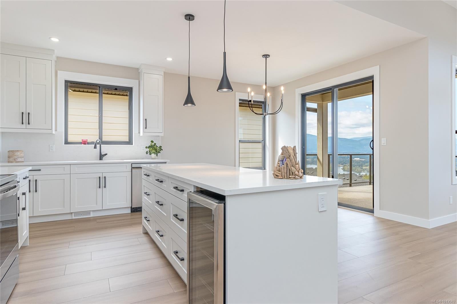 Enjoy sweeping views of Quamichan Lake and the Cowichan Valley from this stunning home in the sought-after Kingsview at Maple Bay. Offering just under 3,200 sq. ft. of modern living space, this residence features a main-level entry with a bright, open-concept design, quality finishes, and a walkout basement. The stylish kitchen boasts quartz countertops, custom cabinetry, and a large island that flows seamlessly into the dining and living areas, complete with a cozy gas fireplace and access to a private balcony with breathtaking views. With 5 bedrooms and 4 bathrooms, the home includes a full legal suite on the lower level—perfect for rental income, extended family, or guests. The suite offers its own entrance, kitchen, living area, and bedroom for complete independence. Don’t miss the opportunity to own this exceptional property in one of Maple Bay’s most desirable neighborhoods—book your showing today!