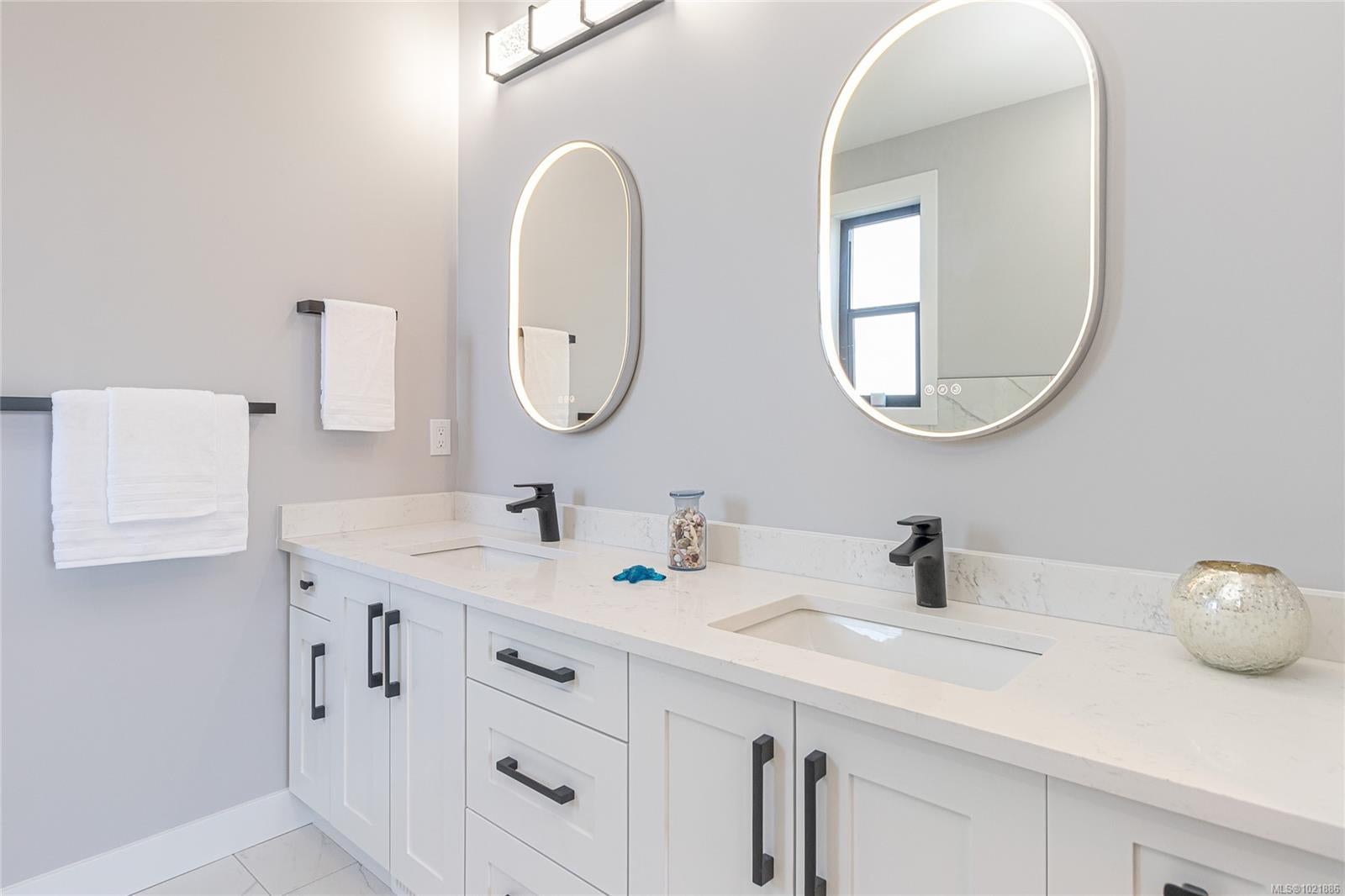 Enjoy panoramic views of Quamichan Lake and the Cowichan Valley from this impressive home in the highly sought-after Kingsview at Maple Bay. Offering just under 3,200 sq. ft. of thoughtfully designed living space, this modern residence features main-level entry, a bright open-concept layout, quality finishes throughout, and a walkout basement. The stylish kitchen showcases quartz countertops, custom cabinetry, and a generous island, flowing seamlessly into the dining and living areas with a cozy gas fireplace and access to a private balcony—perfect for taking in the breathtaking views. With 5 bedrooms and 4 bathrooms, the lower level includes a full legal suite ideal for rental income, extended family, or guests, complete with its own entrance, kitchen, living space, and bedroom for added privacy. An exceptional opportunity to own in one of Maple Bay’s most desirable neighbourhoods—book your showing today.